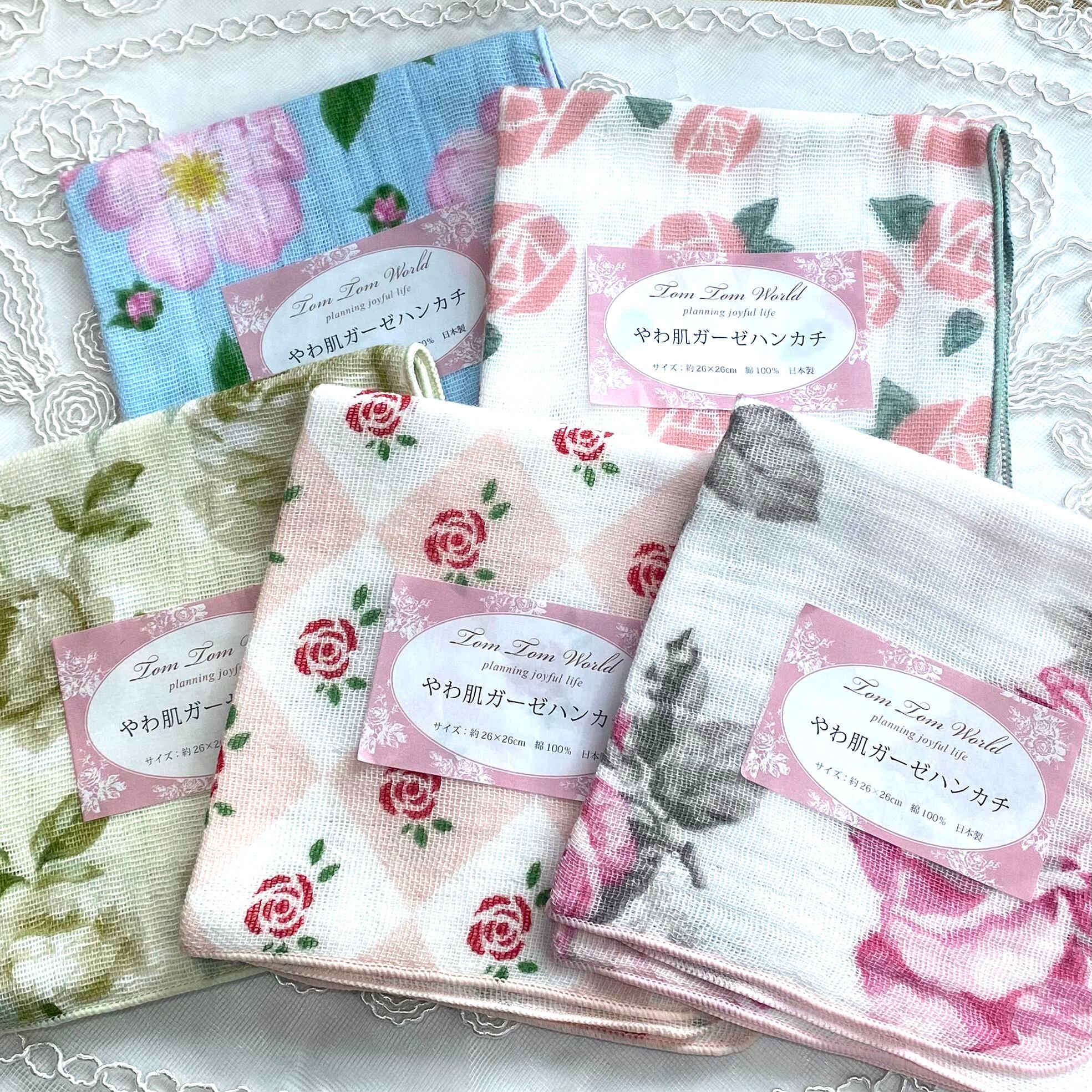 やわ肌ガーゼハンカチ【日本製】二重ガーゼ ローズ 薔薇柄 花柄