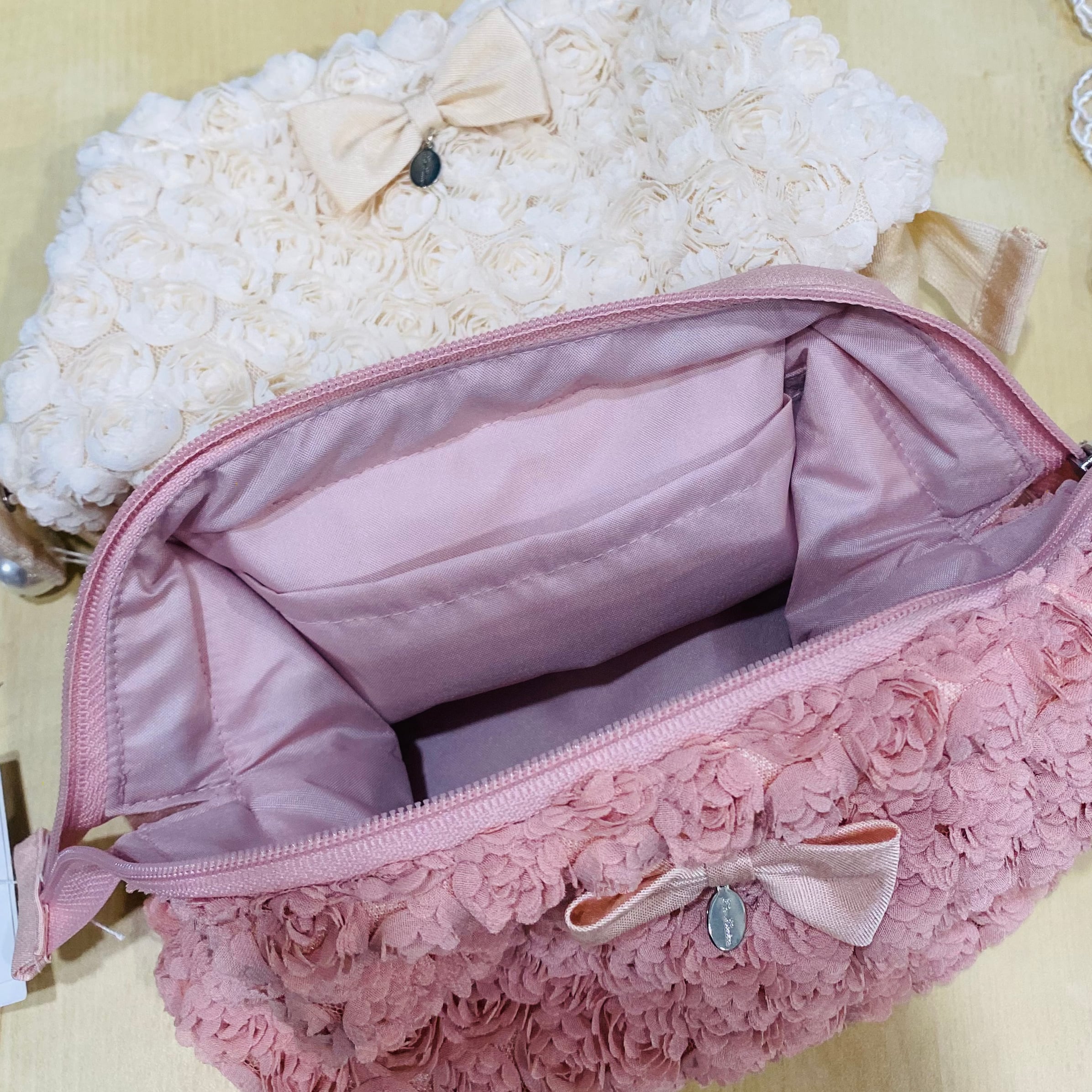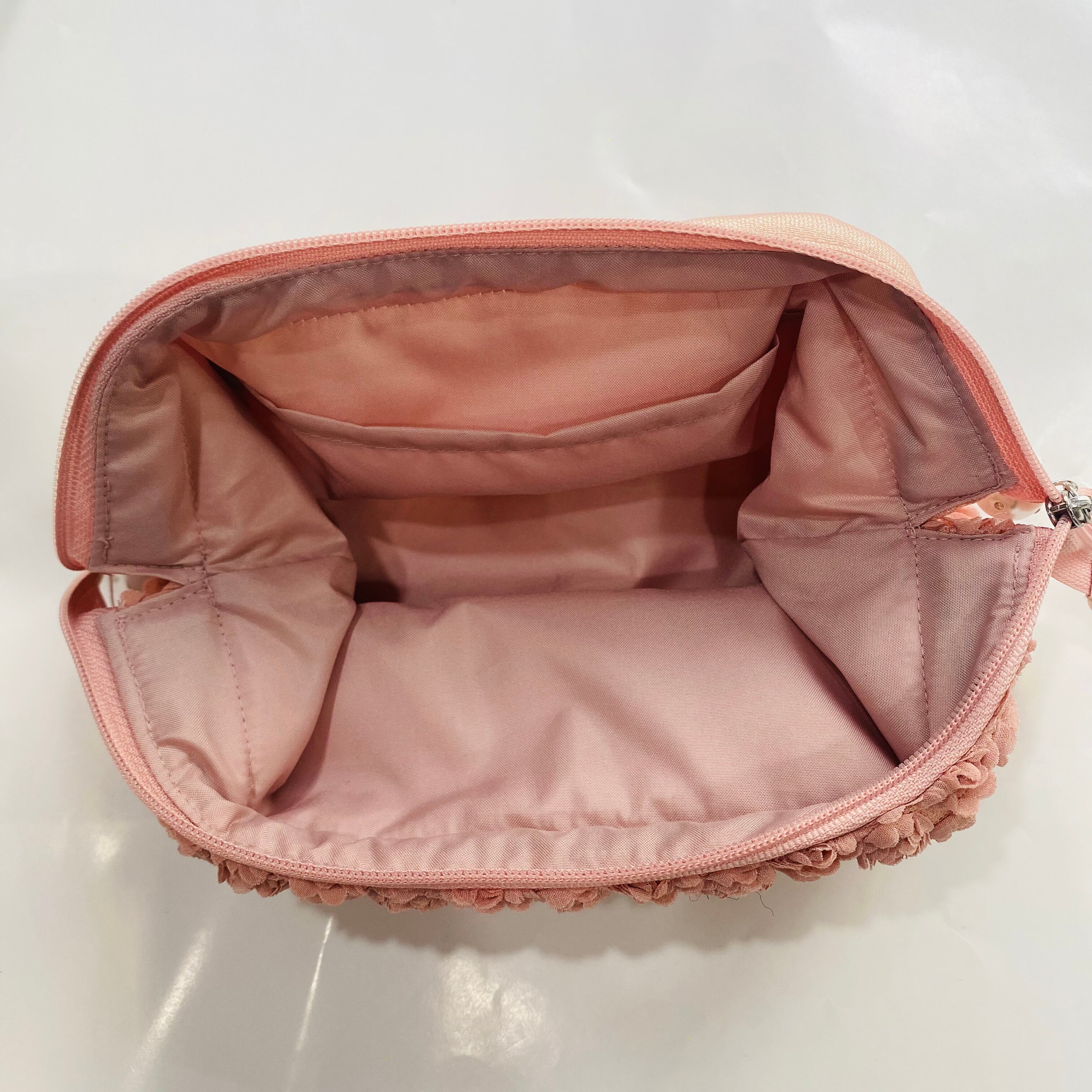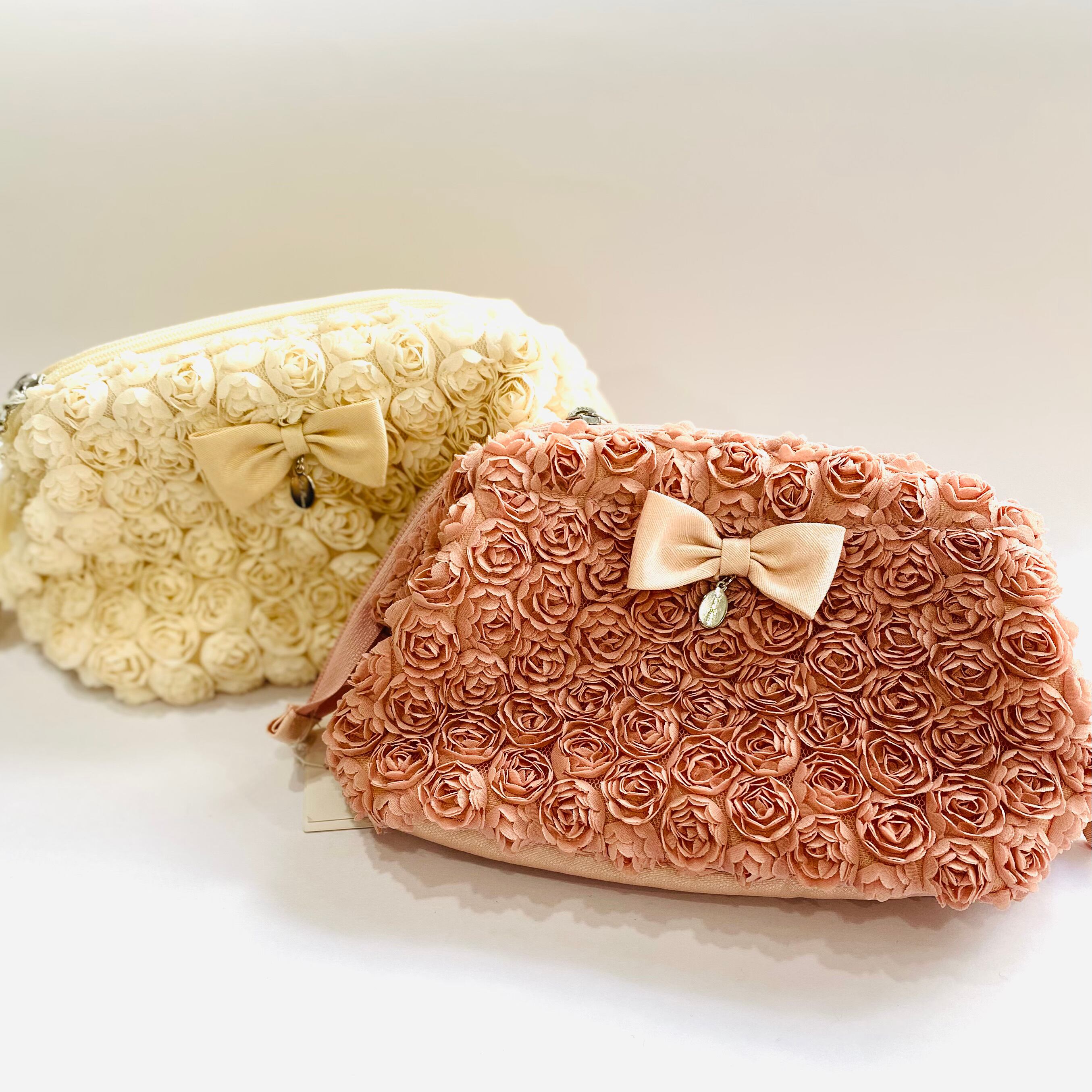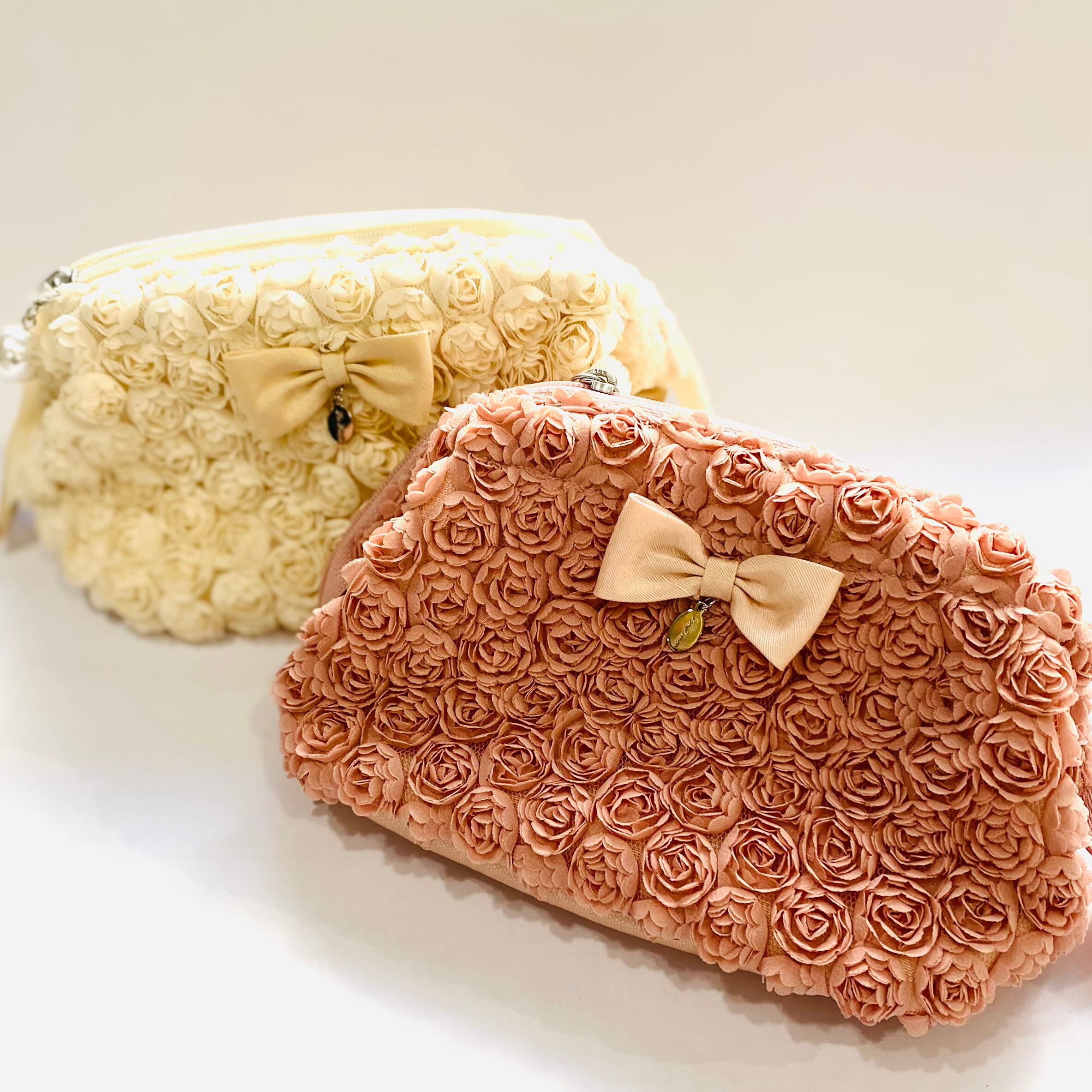 小さなミニローズがデザインされた可愛らしいポーチ。